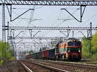25.04.2010 Wrocław Zachodni. M62-3102 (Pol Miedz Trans) wraz z TEM2-297, wjeżdżaja z poc. towarowym na stację Wrocław Zachodni