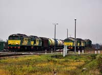 13.11.2009 Zamosć Boratycze. ST44-2017 oraz ST44-2034 wjeżdżaja na stacje od strony Hrubieszowa. Obok lokomotywy podstawiana pod tankowanie